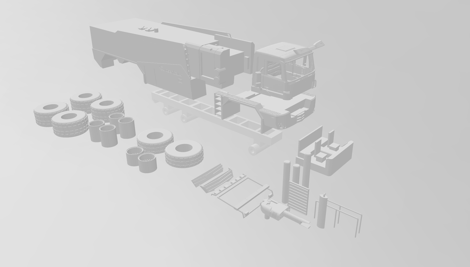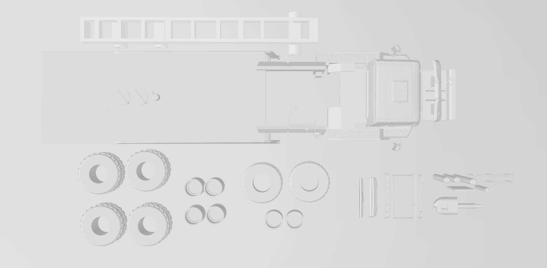 - vollständiger Bausatz inkl. Decals und Verglasung für Fahrerhaus